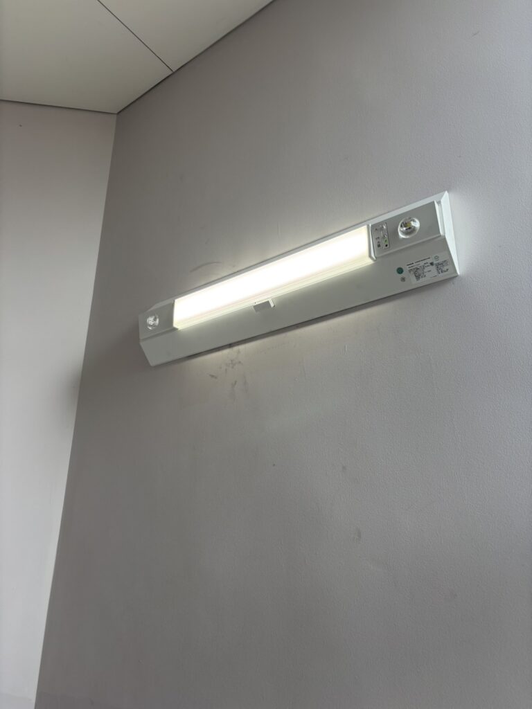 今回の高松市研修施設では、階段通路に設置されていた常時点灯型の誘導灯が経年劣化により不点灯状態となっていました。避難経路の視認性を損ねるリスクがあったため、最新のLEDタイプへ更新しました。