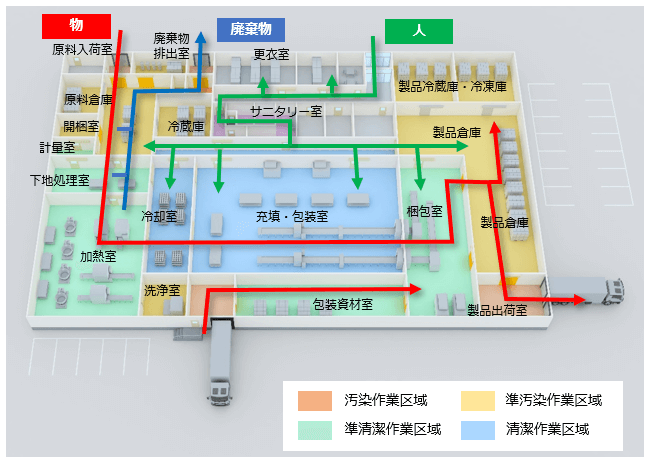 【WORKS】丸亀市 食品加工工場のリセット清掃事例|床粉塵対策・異物混入防止|スカイテクノス